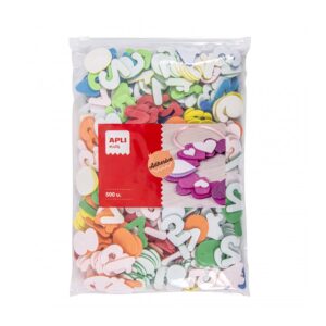 Cijfervormen in EVA-schuim in verschillende kleuren: geel, oranje, rood, lichtblauw, blauw, lichtgroen en groen. Elke vorm heeft een hoogte van ongeveer 35 mm. Elke zak bevat 500 vormen. MAXI-formaat, ideaal voor scholen en groepen. Ideaal voor gebruik thuis of op school in knutselwerkjes, albums, felicitatiekaarten, enz. Uitstekend hulpmiddel voor de allerkleinsten om zich vertrouwd te maken met de cijfers met een zacht en veilig materiaal.