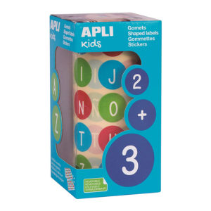 Stickers met de letters van het alfabet in hoofdletters (inclusief uitroepteken, ondervraging en punt). Elke rol bevat 30 voorgesneden vellen voor eenvoudige verwijdering, 900 stickers per rol. 3 verschillende kleuren op elk vel: rood, groen en blauw. De rol bevat verschillende kleurpatronen; daarom is dezelfde letter in verschillende kleuren verkrijgbaar.