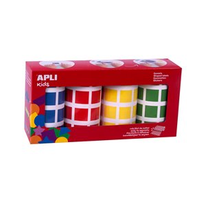 4 rollen vierkante educatieve stickers, formaat 20 mm, in geassorteerde kleuren: geel, blauw, rood en groen, met permanente kleefstof. Het pak bevat 4 rollen (1 per kleur). Elke rol bevat 59 voorgesneden vellen die gemakkelijk los te maken zijn, 7.080 stickers per pak. Het perfecte formaat om te gebruiken in scholen, kinderdagverblijven, kinderateliers of elke andere groep die met kinderen omgaat. Het spelen en creëren met stickers is een basisactiviteit om de fijne motoriek te ontwikkelen en tegelijkertijd te werken aan verschillende vaardigheden en capaciteiten zoals de kennis van kleuren, geometrische vormen en maten; ontwikkeling van logica en creativiteit; teamwork of begrip van ruimte, onder andere.