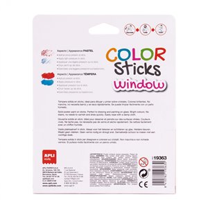 Plakkaatverf in pastel kleuren als massieve stift vorm. Geleverd in de kleuren wit, geel, roze, rood, groen en blauw. Ideaal om te tekenen en te schilderen op glas of spiegel. Verf uit de APLI Kids Color Sticks droogt snel, in minder dan 3 minuten, scherpe, levendige en intense kleuren en is gemakkelijk schoon te maken met een vochtige doek.