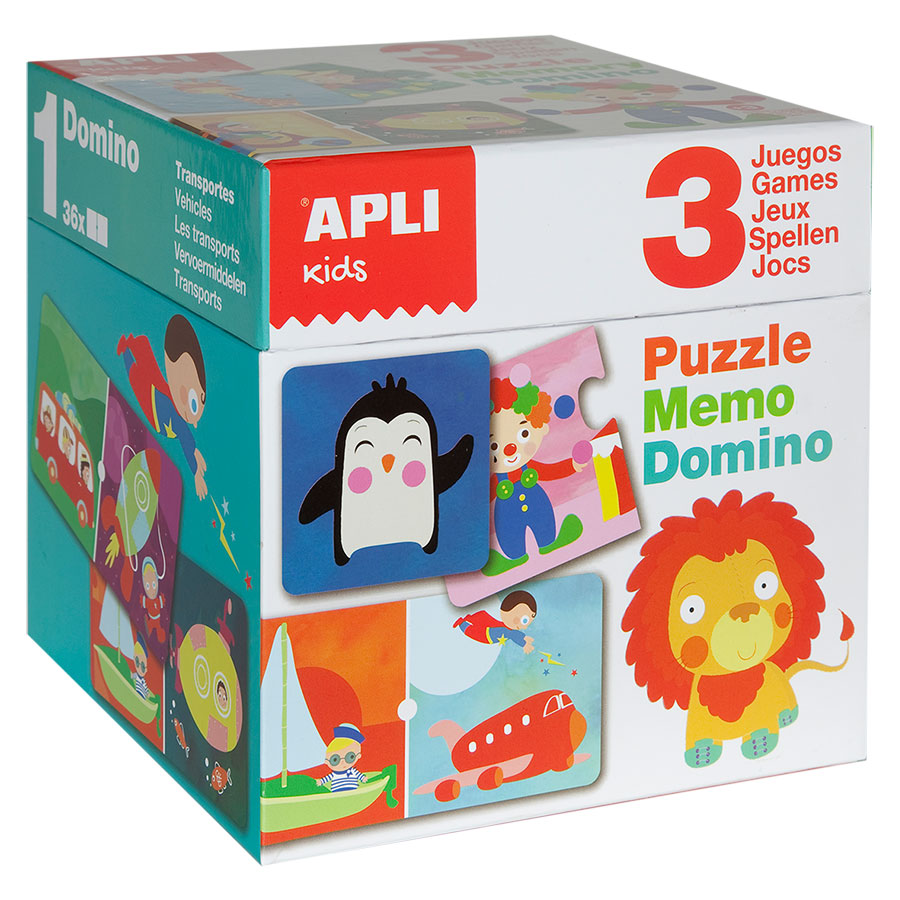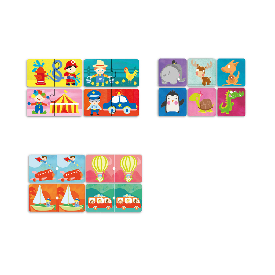 Niet kunnen kiezen uit domino, geheugenspel of puzzelen, met deze box haalt ze allemaal 3 in huis. Een beroepen puzzel (24 stuks), dieren geheugenspel (30 stuks) en domino met vervoersmiddelen (36 stuks). Stevige stukken, veilig en gemakkelijk te hanteren. Puzzelen, geheugenspel en domino zijn ideale spellen voor kinderen, want terwijl ze genieten van het spelen, helpt het hen om veel vaardigheden te verbeteren en te ontwikkelen.