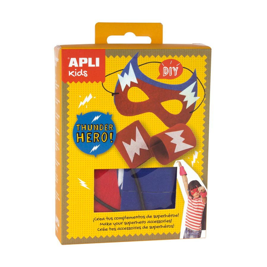 Knutselset om een superheldenmasker en twee manchetten te maken met behulp van de materialen in de verpakking. Dit knutselpakket bevat 12 stukken EVA foam en een elastiek om het masker en de manchetten te maken.