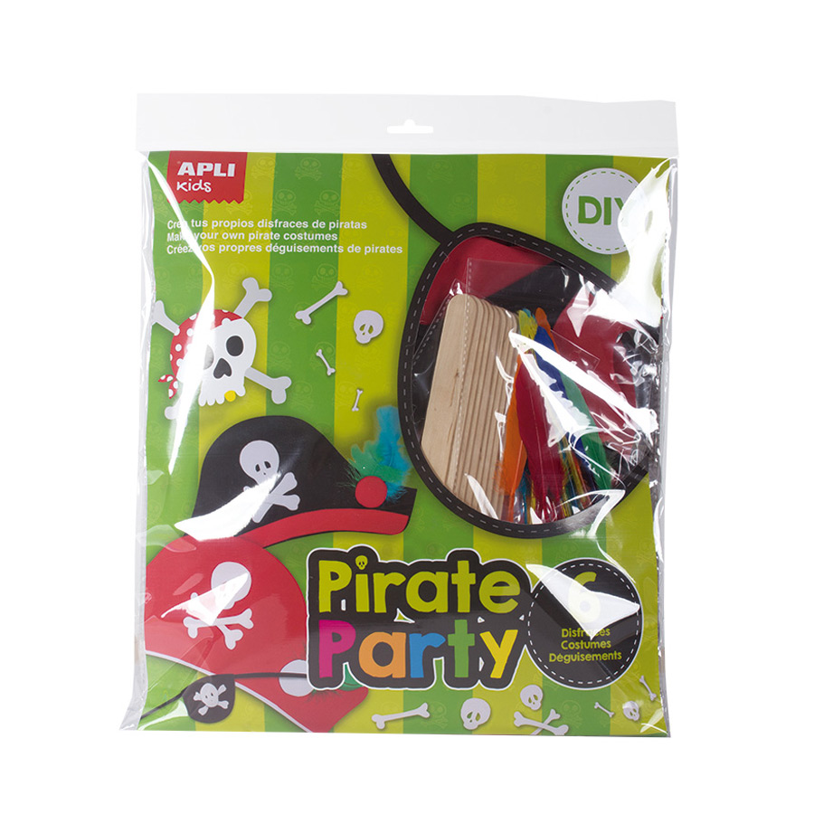 6 los verpakte piratensets, die ze zelf nog in elkaar kunnen zetten en mogen voorzien van bijgeleverde versiering.