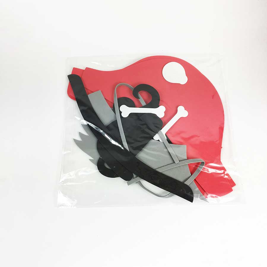 Maak je kinderfeestje compleet met deze piraten party set van 3 rode en 3 zwarte piraten sets gemaakt van EVA foam. Compleet met ooglap, piratenhoed, snor/baard, haak, sabel, pistool.