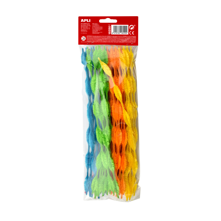 Chenille draad / Pijpenragers voor knutselwerk in geassorteerde kleuren hobbelig type. Kleuren: rood, blauw, groen, geel en oranje. Afmetingen: Ø 6 mm x 300 mm met 6 reliëfs. Elke zak bevat 50 stuks. Flexibel, zacht en gemakkelijk te modelleren. Ideaal voor het maken van decoraties, bouwconstructies, kapsels, poppen, sieraden of ander knutselwerk. Ideaal om de fantasie en creativiteit van kinderen te stimuleren, maar ook om de fijne motoriek te ontwikkelen.