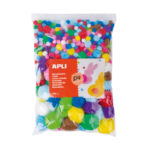Pompons in verschillende kleuren: geel, oranje, rood, fuchsia, paars, roze, lichtblauw, blauw, donkerblauw, groen, lichtgroen, bruin en wit. Elke verpakking bevat 500 pompons in verschillende maten: Ø 50 mm (15 stuks), Ø 40 mm (20 stuks), Ø 35 mm (15 stuks), Ø 25 mm (50 stuks), Ø 20 mm (100 stuks), Ø 15 mm (100 stuks) en Ø 10 mm (200 stuks). MAXI-formaat, ideaal voor scholen en groepen. Een basisproduct voor scholen en knutselaars, ideaal voor het maken van slingers, decoraties, kettingen, kostuums, toepassingen op kleding of voor gebruik in ander handwerk. Ideaal om de fantasie en creativiteit van kinderen te stimuleren.