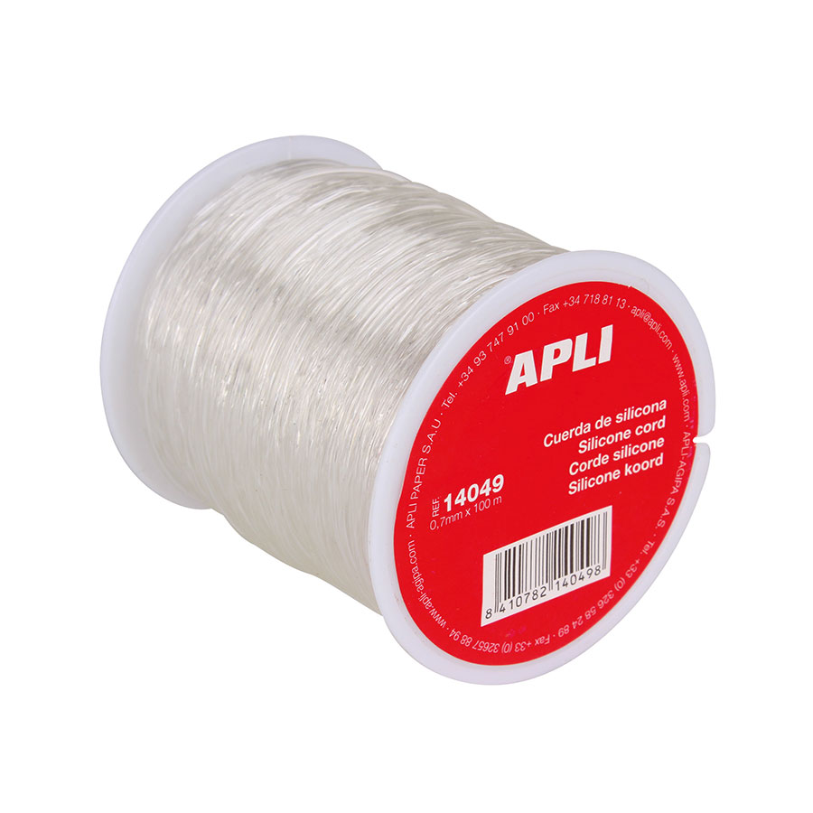 Spoel van elastisch siliconenkoord, afmeting 0,7 mm x 100 m. Transparant hoogwaardig siliconen, zeer taai en elastisch. Ideaal voor gebruik bij juwelierswerk en handwerk.