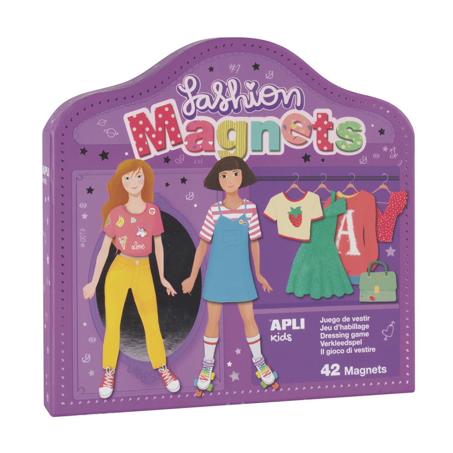 Word een echte modeontwerper met dit magneetspel van APLI Kids. Een magneetbord met 2 modellen, om aan en uit te kleden met de 42 meegeleverde magnetische kledingstukken. Een exclusief APLI Kids ontwerp met originele en kleurrijke illustraties.