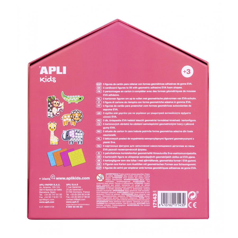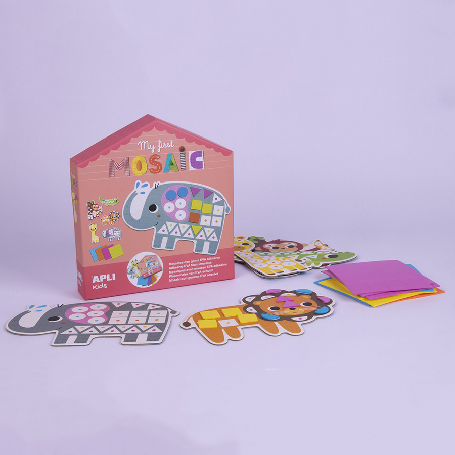 Mozaïek met 5 XXL kaarten in de vorm van jungledieren en 8 vellen EVA-schuim in 4 verschillende kleuren. Gemakkelijk te gebruiken: de kartonnen kaarten hebben witte ruimtes met kleurvlekken als leidraad om in te vullen met pailletten van de juiste kleur. Een product met een hoge didactische waarde, perfect voor het ontwikkelen van vaardigheden en precisie vanaf jonge leeftijd, maar ook voor het stimuleren van de fijne motoriek, het werken aan de oog-handcoördinatie en het bevorderen van ruimtelijke oriëntatie.