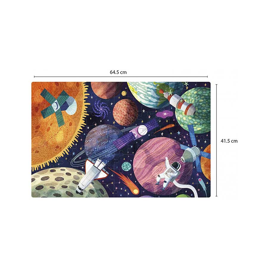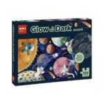 Fluorescerende puzzel “Glow in the Dark” Zonnestelsel model. Bevat 104 stukjes van 5 x 5 cm. Er zit een poster bij met de echte grootte van de puzzel om het in elkaar zetten te vergemakkelijken. Zodra de puzzel in elkaar is gezet, kunnen kinderen het licht uitdoen om de planeten, sterren en satellieten te zien gloeien in het donker en de verschillen te ontdekken die er zijn.
