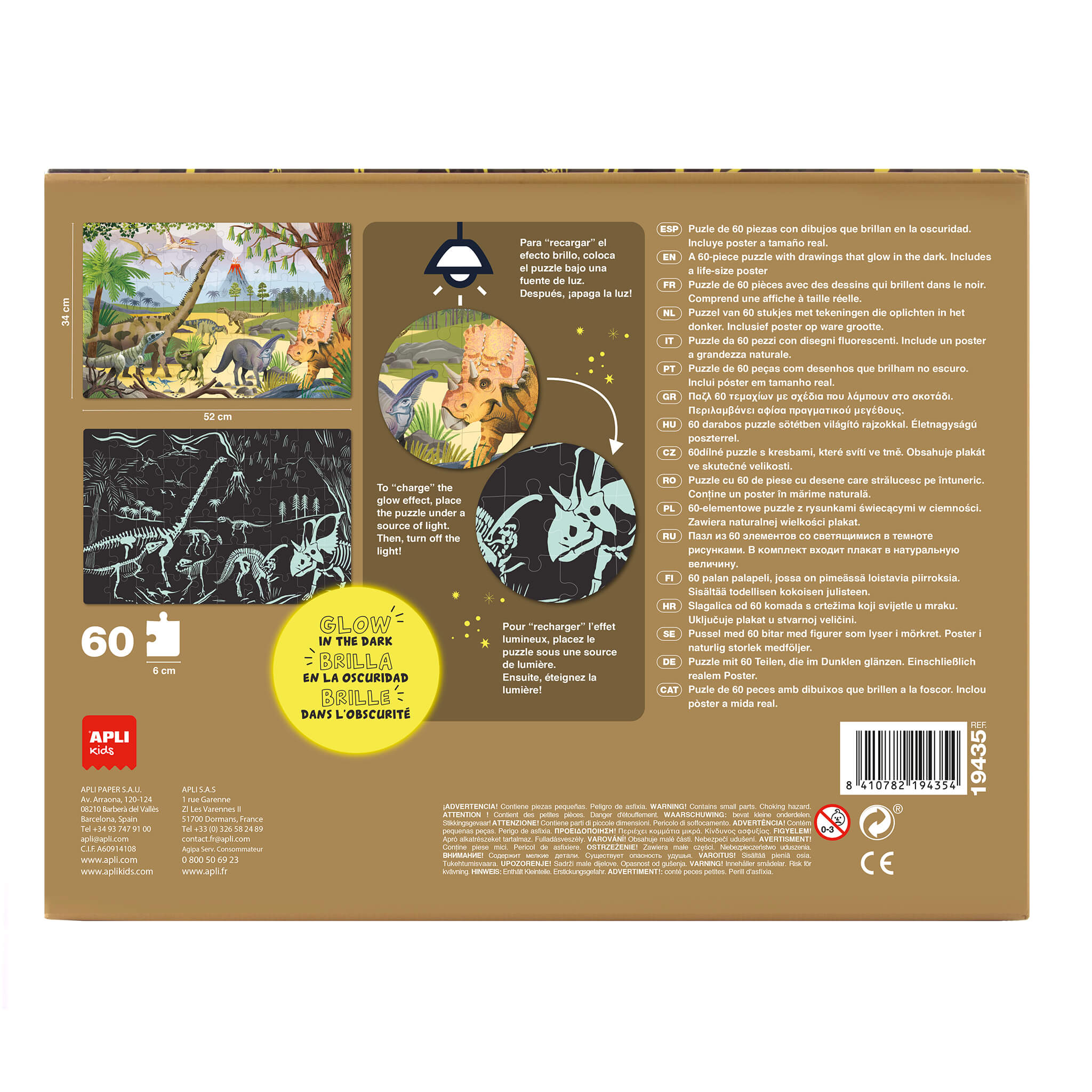 Fluorescerende puzzel “Glow in the Dark” dinosaurus model. Inclusief 60 stukjes van 6 x 6 cm.
