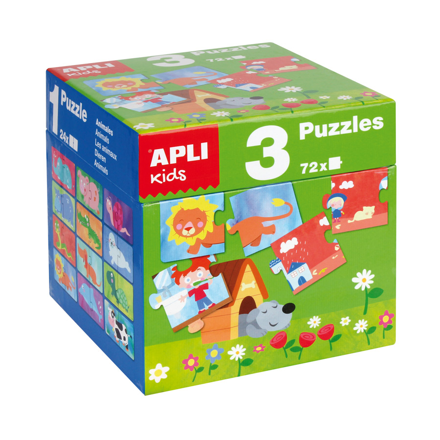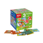 3 puzzels van APLI Kids met de thema’s dieren, thuis en seizoenen. Elke puzzel bevat 24 stukken met puzzelstukken van 7 x 7 cm. Stevige stukken, veilig en makkelijk te hanteren.