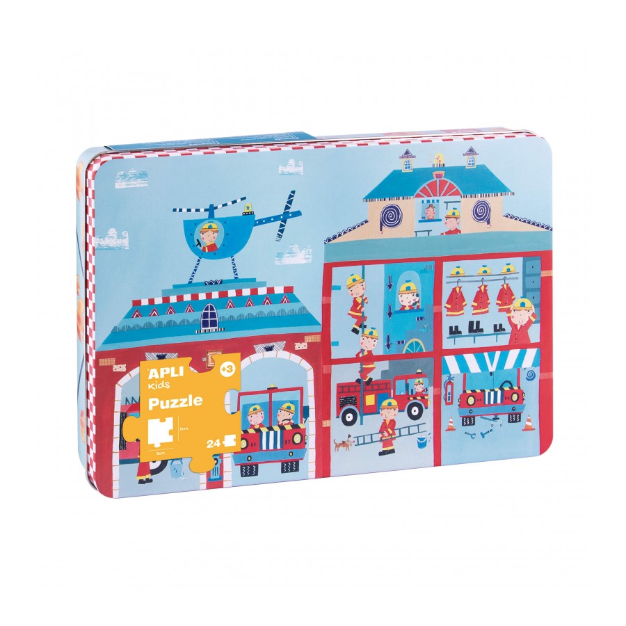 Puzzel XL versie van de brandweerkazerne. Bevat 24 stukjes van 8 x 8 cm. Grootte van de puzzel: 48 x 32 cm.