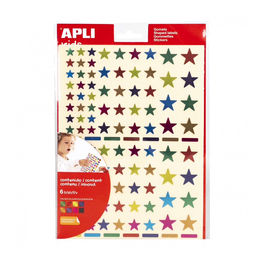 Educatieve stickers permanent klevend, in verschillende metallic kleuren: groen, oranje, roze, blauw, rood, lila en geel. Drie verschillende maten: 10 mm, 14 mm en 20 mm. Elk zakje bevat 6 vellen met verschillende stickers, een totaal van 624 stickers. Een onmisbaar product in elk huis en op elke school. Voordat kinderen leren omgaan met potloden of verf, kunnen ze met deze stickers beginnen in de wereld van kleuren en vormen. Spelen en creëren met stickers is een basisactiviteit om de fijne motoriek te ontwikkelen en tegelijkertijd te werken aan verschillende vaardigheden en capaciteiten zoals de kennis van kleuren, geometrische vormen en maten; ontwikkeling van logica en creativiteit; teamwork of begrip van ruimte, onder andere.
