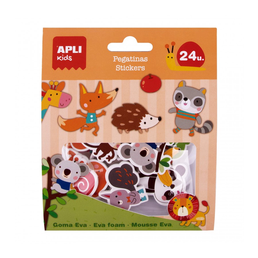 Decoratieve stickers met Jungle dieren thema. Ideaal voor kinderen om plezier te hebben en hun eigen avonturen mee te maken. Het zakje bevat 24 zachte EVA foam stickers met schattige wilde dieren ontwerpen. Ideaal om je favoriete voorwerpen te versieren, felicitatiekaarten te maken, cadeautjes in te pakken, enz.