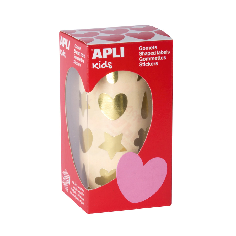 Stickers goudkleurig met 4 verschillende vormen: bloem (20 x 18 mm), druppel (7,8 x 18,8 mm), ster (18,5 x 19,4 mm) en hart (20 x 18,4 mm). Elke rol bevat 30 voorgesneden vellen die gemakkelijk te verwijderen zijn, 720 stickers per rol (180 stickers/vorm)