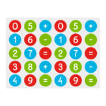 Stickers met cijfers (inclusief +,- en = teken), ideaal om te leren rekenen. Elke rol bevat 30 voorgesneden vellen voor eenvoudige verwijdering, 900 stickers per rol. 3 verschillende kleuren op elk vel: rood, groen en blauw. De rol bevat verschillende kleurpatronen; daarom is hetzelfde cijfer in verschillende kleuren verkrijgbaar.