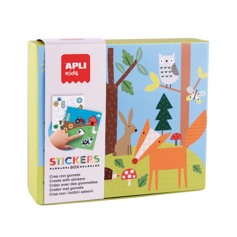 Stickerspel dieren en hun omgeving in kartonnen doos. Het doel van het spel is om de illustraties van natuurlijke omgevingen van de kaarten te voltooien met behulp van thematische stickers van verschillende vormen en maten: dieren, planten, bloemen en andere elementen. Het spel bevat: 8 vellen 200 g matte afwerking om in te vullen met stickers, 8 vellen verwijderbare geometrische stickers in verschillende kleuren en een full color boekje met voorbeelden. Met de verwijderbare stickers kan het kind corrigeren als het een fout maakt. Dit spel, ontwikkeld met de steun van pedagogen, heeft een hoge didactische waarde: het stimuleert de fijne motoriek, ontwikkelt het wiskundig denken, helpt de concentratie, werkt aan de hand-oog coördinatie en ontwikkelt de ruimtelijke oriëntatie.