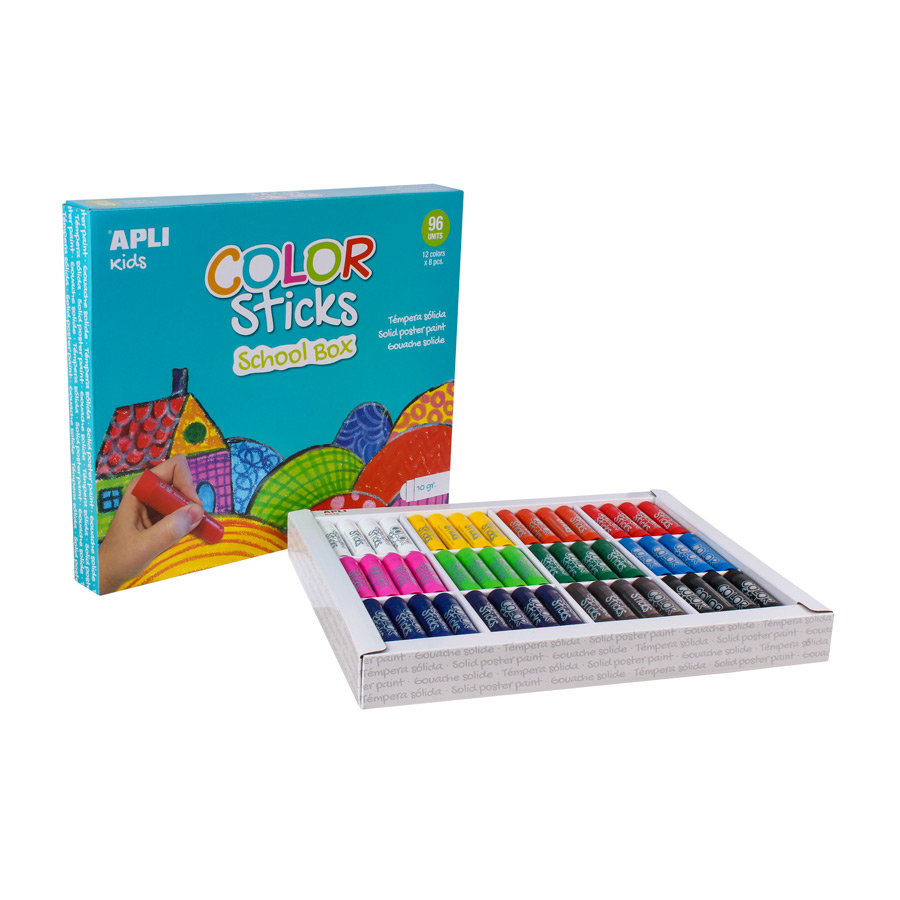 Plakkaatverf in massieve stift vorm. Geleverd in de kleuren wit, geel, oranje, rood, roze, groen, donkergroen, blauw, donkerblauw, paars, bruin en zwart. Ideaal om te tekenen en te schilderen op papier, karton, kaart, enz. Elke doos bevat 8 eenheden per kleur, een ideaal formaat voor scholen of instellingen met kinderen. APLI Kids Color Sticks geven geen vlekken, hebben een satijnen afwerking, zodat ze geen vernis nodig is. Drogen snel, in minder dan 3 minuten, scherpe, levendige en intense kleuren. U kunt verschillende afwerkingen bereiken afhankelijk van de druk die wordt uitgeoefend: lichte druk = krijt effect; veel druk = dekkend effect. Als de tekening klaar is, barst hij niet, blijft flexibel en bevat geen oplosmiddelen.