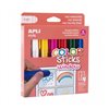 Plakkaatverf in pastel kleuren als massieve stift vorm. Geleverd in de kleuren wit, geel, roze, rood, groen en blauw. Ideaal om te tekenen en te schilderen op glas of spiegel. Verf uit de APLI Kids Color Sticks droogt snel, in minder dan 3 minuten, scherpe, levendige en intense kleuren en is gemakkelijk schoon te maken met een vochtige doek.